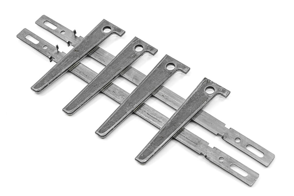 Penele pentru montanți sunt elemente de fier care se folosesc la montarea rapidă a plăcilor galbene tristrat. Acest accesoriu fixează montanții , plăcile galbene tristrat și distanțierele ce se află intre cele două plăci galbene tristrat.